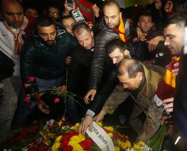 Galatasaray Lisesi önünde toplanan taraftarlar daha sonra toplu halde Vodafone Arena'ya giderek patlamanın olduğu yere çelenk bıraktı.