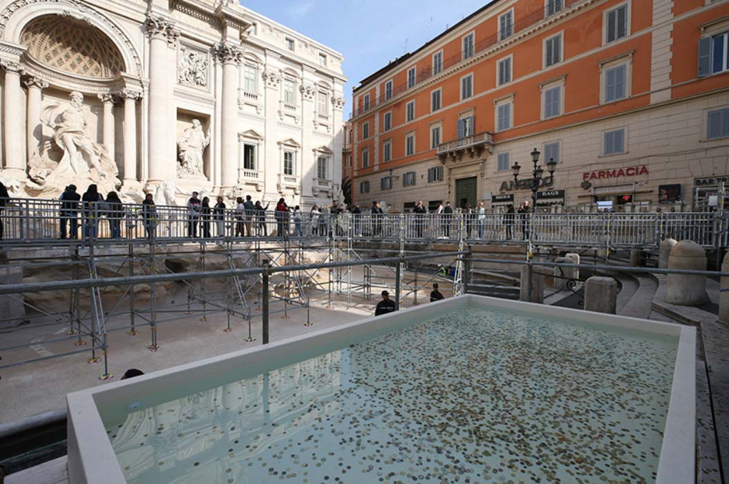 18. yüzyılda dönemin Papası 12. Klement'in açtığı yarışmayı kazanan İtalyan mimar Nicola Salvi'nin, Poli Sarayı'nın bir cephesine yaptığı geç barok dönem mimarisinin örneklerinden sayılan Trevi Çeşmesi, en son 2014'te çok ciddi ve geniş kapsamlı restorasyondan geçmişti.