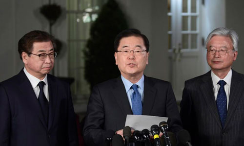 Güney Kore Ulusal Güvenlik Danışmanı Chung Eui-Yong, ABD'li yetkililerle görüşmesinin ardından Beyaz Saray'da yaptığı basın açıklamasında Kim Jong-un'un davetinin ABD Başkanı Donald Trump tarafından kabul edildiğini açıkladı.