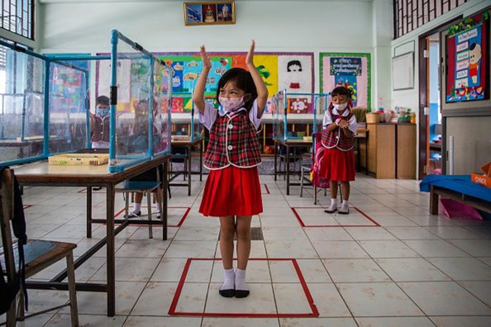 Tayland'ın başkenti Bangkok'taki Wat Klong Toey Anaokulu, korona virüs pandemisi nedeniyle Mart ortasında ara verilen eğitim-öğretim hayatına yeniden başladı.
