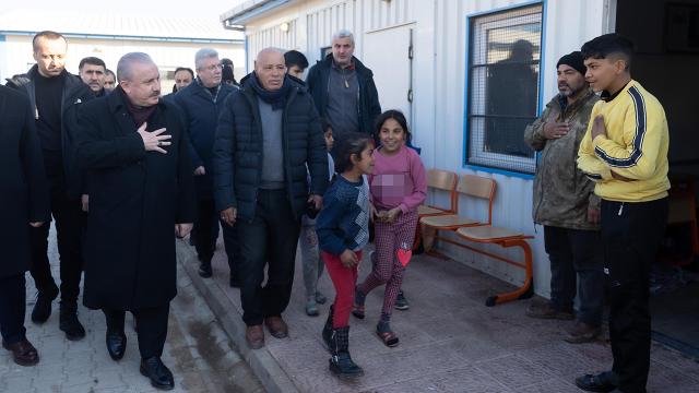 Deprem bölgesinde ziyaretlerini sürdüren Türkiye Büyük Millet Meclisi (TBMM) Başkanı Mustafa Şentop, ilk olarak Kilis Zeki Taşçı İlköğretim Okulu bahçesinde kurulu konteynırlarda kalan aileleri ziyaret etti.