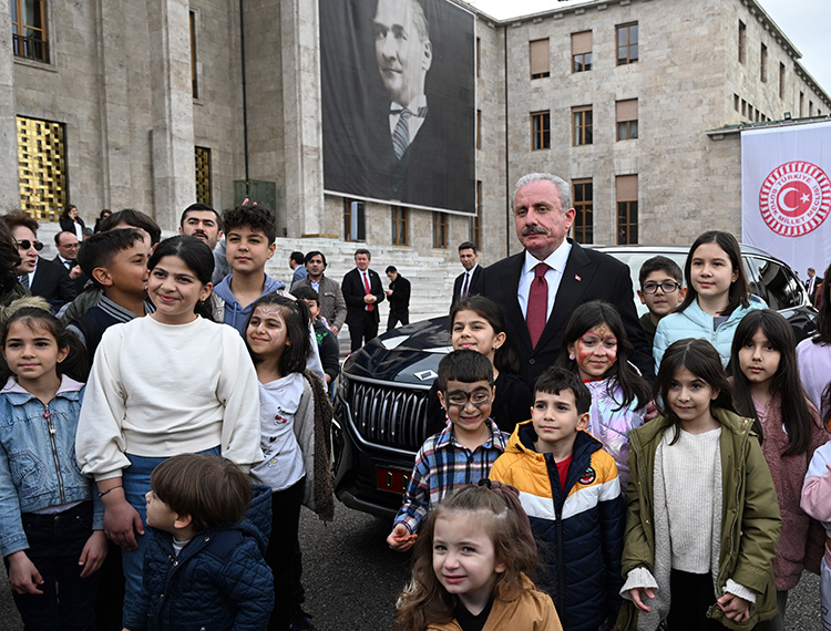 Şentop, TBMM'nin açılışının 103. yıl dönümü dolayısıyla özel gündemle toplanan TBMM Genel Kurulunun ardından Şeref Holü'nde kendisini bekleyen çocuklar ile fotoğraf çektirdi.
