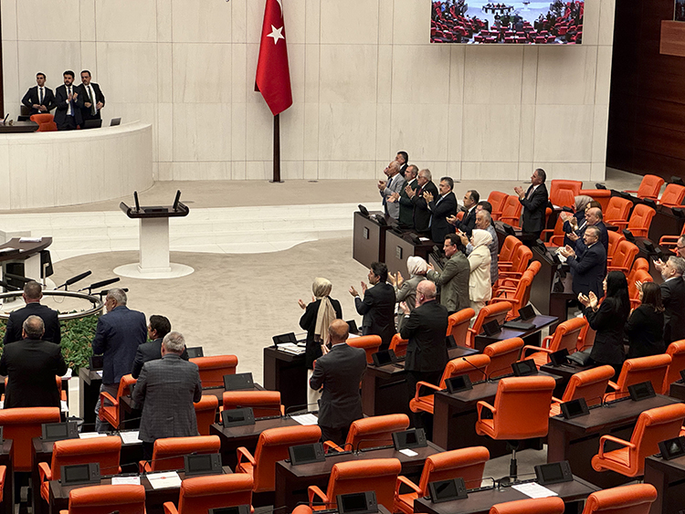 Tezkerede, "Türkiye Büyük Millet Meclisi olarak bu demokratik ayıbı esefle karşıladığımızı ilan ediyoruz. Gazze'de 10 ay içinde çoğunluğunu kadın ve çocukların oluşturduğu en az 40 bin sivil katledilmiştir. Yaşam alanları kasıtlı olarak tahrip edilen 2 milyon Gazzeli yerlerinden edilmiştir. Hayatta kalabilenler, her türlü insani yardımın engellendiği dar bir bölgede açlık ve hastalıklar karşısında yaşam mücadelesi vermektedir. Gazze'deki insani trajedi her geçen gün derinleşirken, Batı Şeria'daki işgalci şiddeti de tırmanmakta; Filistinlilerin canına ve mülklerine yönelik saldırılar hız kazanmaktadır." denildi.