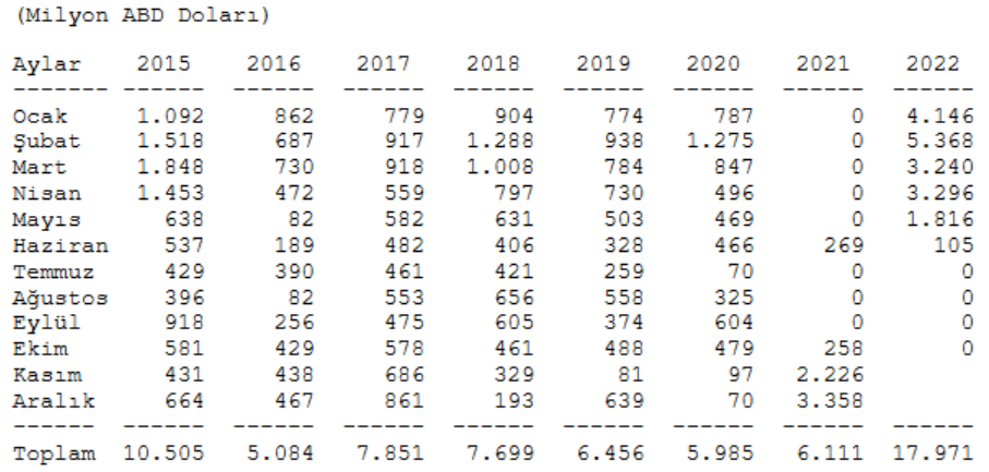 Aylar itibariyle KİT'lerin Merkez Bankası'ndan döviz alımı şu şekilde gerçekleşti: