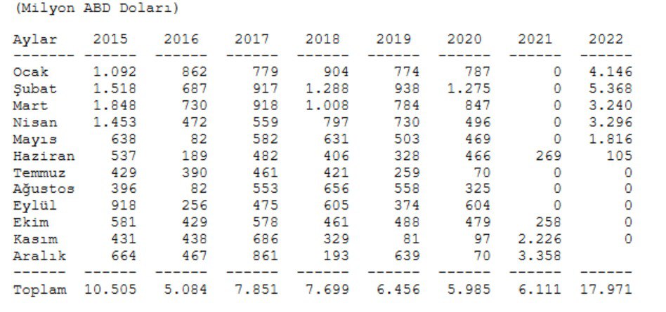 Aylar itibariyle KİT'lerin Merkez Bankası'ndan döviz alımı şu şekilde gerçekleşti: