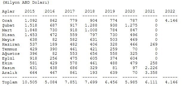 2021 yılının tamamı BOTAŞ'a döviz satışı 6 milyar 111 milyon dolar olmuştu.