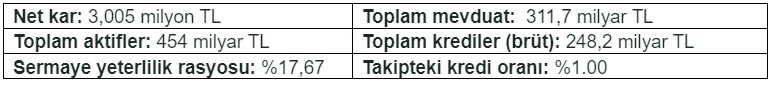 31 Mart 2024 tarihli finansal sonuçlara ilişkin seçilmiş göstergeler: