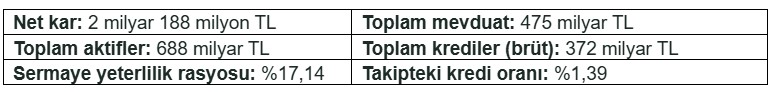 31 Mart 2025 tarihli finansal sonuçlara ilişkin seçilmiş göstergeler: