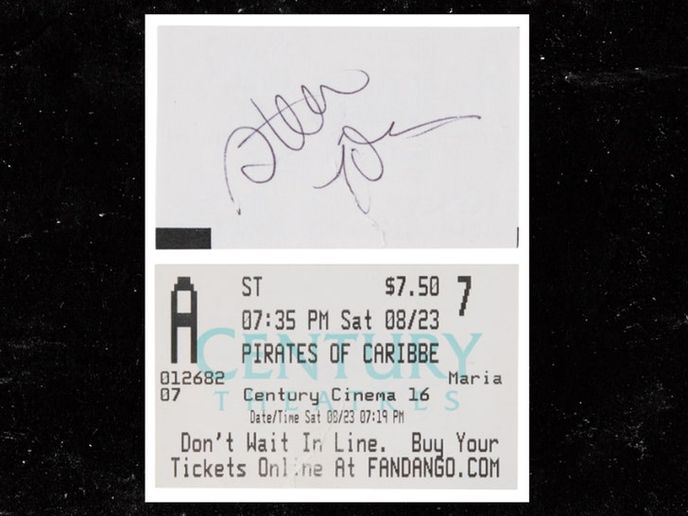 2011'de hayatını kaybeden Apple'ın kurucusu Jobs'ın imzası, 2003'te 'Karayip Korsanları: Siyah İnci'nin Laneti' filmi biletinin üzerine atılmış. Bir hayranının imzasını istemek için filmin sonuna kadar beklediği Jobs, elinde bir kağıt parçası olmadığı için imzalamak için kendi sinema biletini çıkarıp imzalamış.