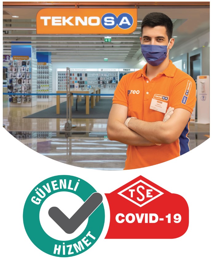 Türkiye teknoloji perakendeciliğinin güçlü markası Teknosa, sektöründe güvenilir ve kaliteli hizmet konusunda öncü adımlar atmaya devam ediyor. Pandemiyle birlikte çalışanlarının, müşterilerinin ve tüm paydaşlarının sağlığını ilk sıraya koyan Teknosa, sektöründe TSE COVID-19 Güvenli Hizmet Belgesi alan ilk şirket oldu. Teknosa, bu belgeyle birlikte, Sanayi ve Teknoloji Bakanlığı’nın TSE liderliğinde hazırladığı, “COVID-19 Hijyen, Enfeksiyon Önleme ve Kontrol Kılavuzu” çerçevesinde belirlenen pandemi tedbirlerine harfiyen uyduğunu gösterdi.