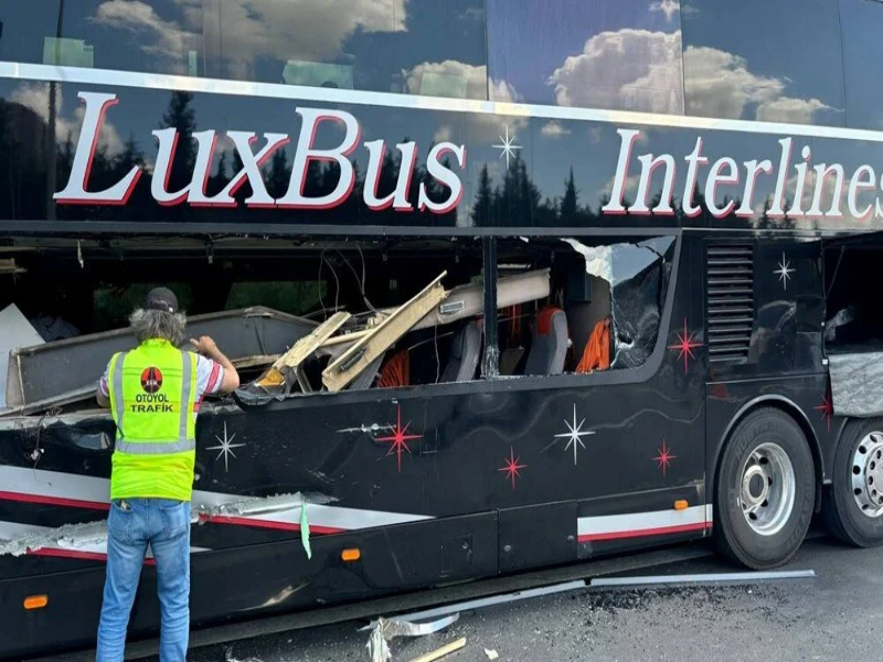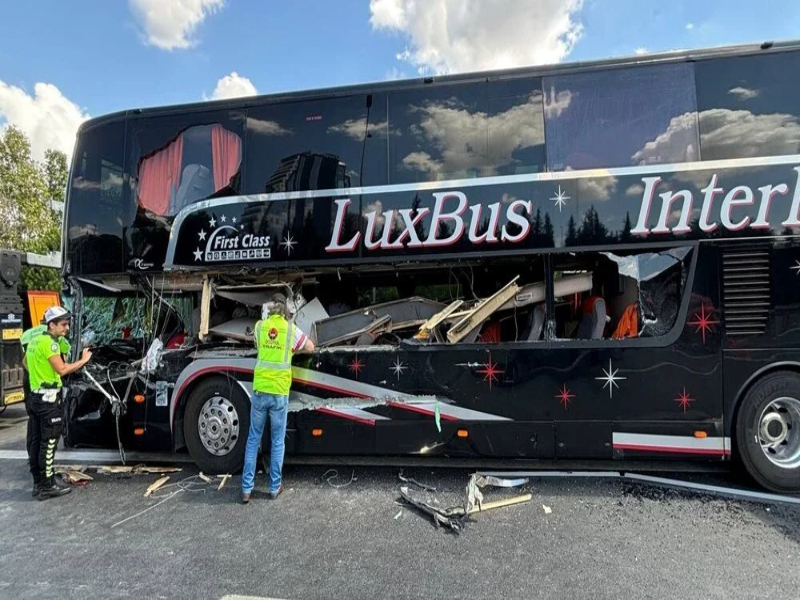 TEM Otoyolu'ndan Ankara istikametinde seyreden Ukrayna plakalı tur otobüsü, önünde giden 34 DP 7798 plakalı kamyona çarptı.