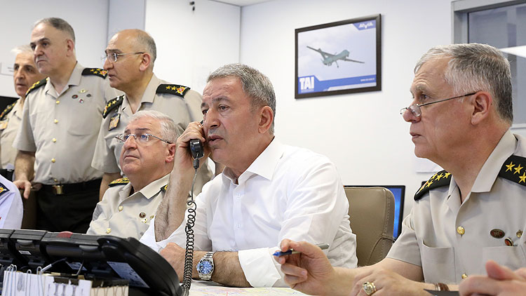 Milli Savunma Bakanı Hulusi Akar, Genelkurmay Başkanı Orgeneral Yaşar Güler ve kuvvet komutanları tarafından Silahlı Kuvvetler Komuta ve Harekat Merkezi'nden gece boyunca sevk ve idare edilen harekat, Kara Kuvvetleri Komutanlığına ait ateş destek vasıtalarının atışları ile başladı.