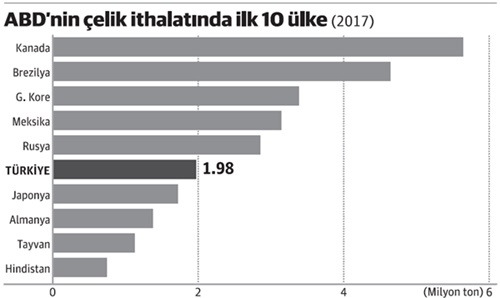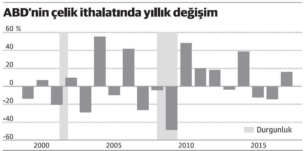 ABD şimdi de ticaret yasasının 232. bölümü uyarınca ulusal güvenlik gerekçesi ile ithal çelik ve alüminyum vergisini yükseltti. ABD yönetiminin, Avrupa Birliği’nden ve Çin’den misilleme tehdidine yol açan adımı 'ticaret savaşı'nın pimini çekti. ABD'nin bu sektörde ticaret yaptığı Meksika, Brezilya ve Kanada da bu karara karşılık vereceklerini duyurdu.