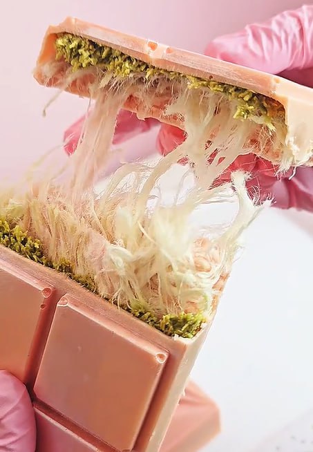 “Dubai çikolatası” antep fıstığı kreması ve kadayıf gibi egzotik malzemelerle doluyken, melek saçlı çikolatanın içi ismini aldığı saç benzeri pişmaniye ile dolu...