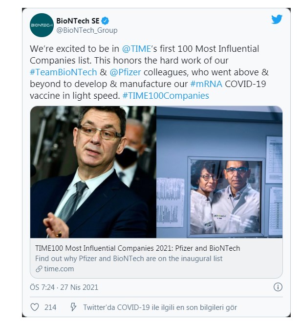 Öte yandan, koronavirüsle mücadelede 'oynadıkları kritik rol' nedeniyle BioNTech, Moderna, Johnson & Johnson, CVS, Walgreens, and Illumina şirketleri de listeye dahil edildi.