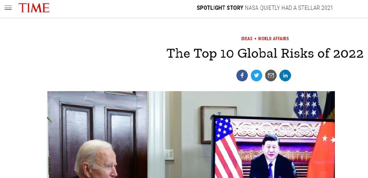 ABD merkezli dergi Time, “2022’nin ilk 10 küresel riski” başlıklı bir haber/analiz yayınladı. Derginin kıdemli köşe yazarlarından olan ve aynı zamanda Columbia Üniversitesi’de ders veren Ian Bremmer imzalı makalede birçok farklı konu masaya yatırıldı.