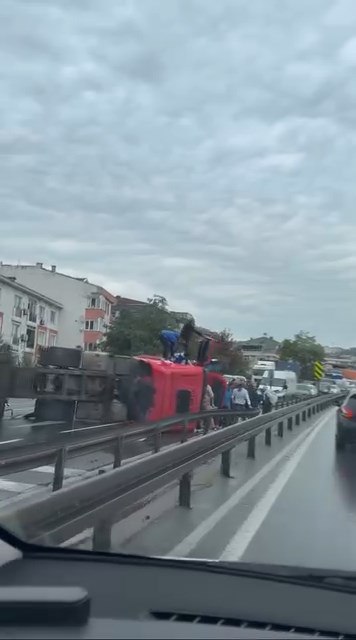 Kaza, saat 10.30 sıralarında D-100 Karayolu Büyükçekmece mevkii Edirne istikametinde meydana geldi. Yağış nedeniyle şoförü M.E.P.'nin direksiyon hakimiyetini kaybettiği 59 AAR 214 plakalı TIR, bariyerlere çarparak devrildi.