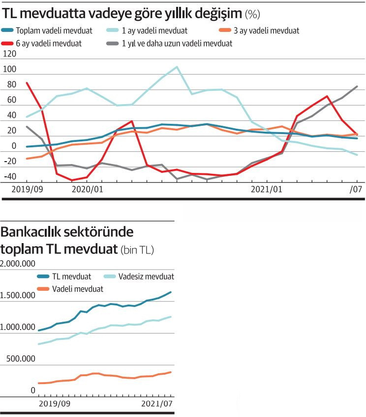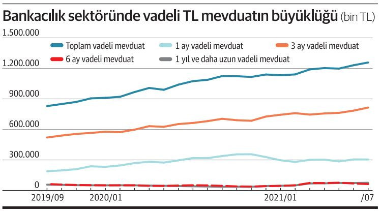 Politika faizinin marttan bu yana yüzde 19 olarak uygulanması TL mevduatta da faizlerin yukarı çekilmesine neden olmuştu. BDDK verilerine göre geçen yıl ekimde TL mevduatın toplam mevduat içindeki payı yüzde 49,3 iken Temmuz 2021 itibariyle bu oran yüzde 50,9'a yükseldi. TL mevduata hem stopaj desteğinin uygulandığı hem de parasal sıkılaştırma adımları ile dolar/TL'de gerileme ve mevduat faizlerinde yükselişin yaşandığı Şubat 2021'de TL mevduatın payı yüzde 51,4 ile son dönemlerin en yüksek seviyesine çıkmıştı. Bu seviye dolar/TL’deki hareketlilik sonrasında mayıs ve haziranda yüzde 50 seviyesine gerilemişti.