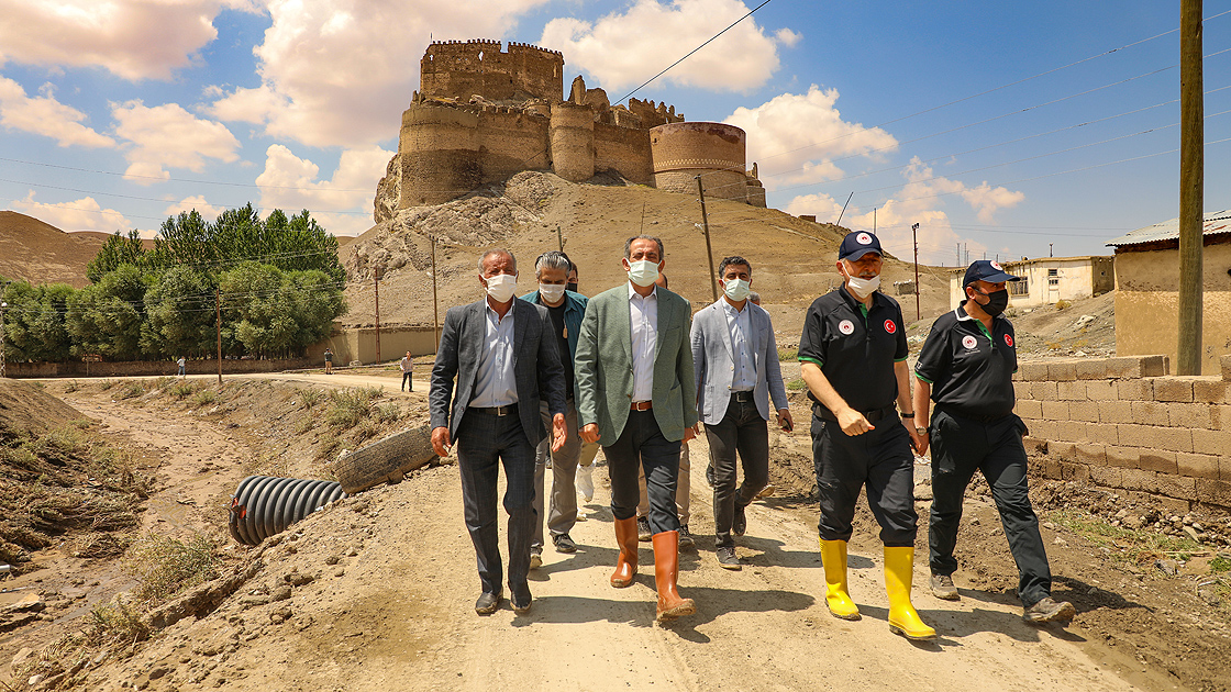 "Cumhurbaşkanımızın talimatlarıyla bölgeye intikal ettik. Üç gündür sel bölgesindeyiz. İpekyolu, Gürpınar ve Başkale ilçelerinde incelemelerde bulunduk. Vatandaşlarımızla hemhal olduk, dertlerini dinledik, mağduriyetleri yerinde gördük. Olayı yerinde görmek ve incelemek çok faydalı bir tespit çalışması oldu. Yapılan çalışmalar neticesinde Başkale'de 64, Çaldıran'da 30, Özalp'ta 6 ağır hasarlı ev tespit edildi. Bu sayı kesin değil. Hasar tespit çalışmaları devam ediyor. TOKİ en kısa sürede bu evleri yeniden ihya edip vatandaşlarımıza teslim edecek. Yol ve suyun akış yönü konusunda çalışmalarımız DSİ ile yürütülecektir. DSİ sahada çalışmalarını sürdürüyor. Çalışmalarımız tespit mahiyetindedir. Tespitler sonucunda bir aylık askı süresi var. Askı süresi tamamlandıktan sonra TOKİ marifetiyle burada hasara uğrayan binalar yeniden ihya edilecek, vatandaşlarımıza teslim edilecektir."