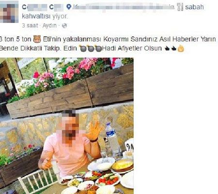 Serbest kalmasının ardından sosyal paylaşım sitesi Facebook'taki sayfasında yaptığı paylaşımda, 'Bu yorumları, beni takip eden, kasap lokanta ve esnaf arkadaşlar yarın akşamüstü saat 17.00'de benimle iletişime geçsinler. Kimseye acımayacağım. Benden kimlerin alışveriş yapıp, 'Bana et getir' diye yalvaranların ismini açıklayacağım hem de büyük harflerle. Bu zararımı sizlerden karşılamak zorundayım. Kusuruma bakmayın, bir de sabah yapmış olduğum kahvaltı ve rakının parasını da şanslı birine yükleyeceğim. Artık alışveriş yapanlar kimse onlar kendisini iyi biliyor. 5 kilo dahi benden et aldıysa bedelini ödeyecek' ifadelerine yer verdi.