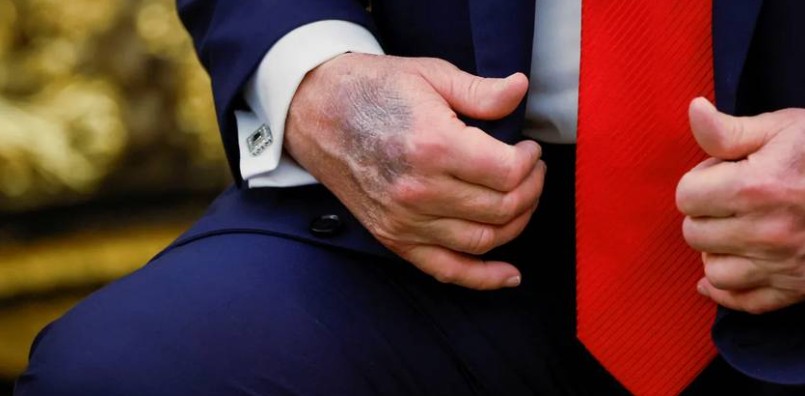 ABD medyası, geçen hafta, 79 yaşında göreve başlayan en yaşlı başkan olan Trump'ın sağ elinde aylardır geçmeyen bir morluk olduğu konusunu tekrar gündeme getirmişti. Haberlerde, Trump'ın, ek olarak sol elinin arkasında da renk değişimi veya hafif morluklar olduğunun görüldüğü vurgulanmıştı.