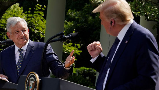 Trump ve Meksika Devlet Başkanı Andres Manuel Lopez Obrador, Beyaz Saray'da yaptıkları ikili görüşmenin ardından, Beyaz Saray bahçesinde iki ülke arasında "Dostluk Deklarasyonu" imzaladı.