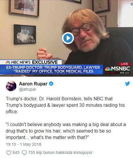 Olay, Bornstein'ın Amerikan New York Times gazetesine Trump'a saç dökülmesini önleyici Propecia ilacı yazdığını söylemesinin ardından meydana gelmişti.