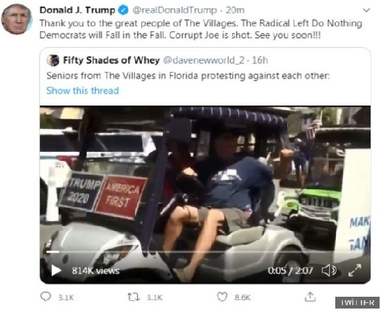 Tepkilerin ardından Trump paylaşımını sildi. Tweet'te, Trump mitingine katılanlara teşekkür ediyor ve "Radikal Sol Hiçbir Şey Yapmıyor Demokratlar Sonbaharda Düşecek. Yolsuz Joe (rakibi Joe Biden'ı kastediyor) postu deldirdi. Yakında görüşmek üzere!!!" yazıyordu.