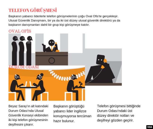 Beyaz Saray’da başkanın yabancı liderlerle yaptığı telefon görüşmelerinin ses kayıtları tutulmuyor. Görüşmelerin dökümü Ulusal Güvenlik Konseyi ekibinin görüşme sırasında aldığı notlara dayanıyor. Bu notlar ve döküm hazırlanırken ses tanıma yazılımları da kullanılıyor. Eskİ ABD Başkanı Barack Obama döneminde Ulusal Güvenlik Konseyi’nin Batı Yarımküre’den sorumlu üst düzey direktörü Mark Feierstein başkanın telefon görüşmeleri için “Bunların ses kaydı alınmıyor. Ben birkaç telefon görüşmesi sırasında not alan ekipte yer aldım. Çok telaşlı bir durum. O kadar hızlı yazıyorsunuz ki yakalayabildiğiniz ne varsa yazıyorsunuz” sözleriyle anlatıyor.