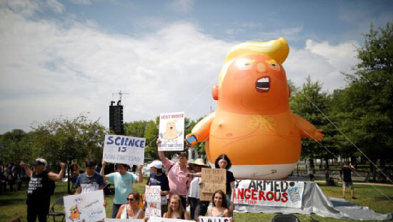 Bu nedenle Washington’da kutlamaların yanısıra protestolar da vardı. Protestocular Trump şeklinde büyük bir bebek Trump balonu şişirdi.