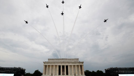 Lincoln Anıtı’ndaki etkinlikte askeri araçlar geçit töreni düzenlemedi sadece sergilendi. Askeri uçaklar ise gökyüzünde gösteri uçuşu sergiledi. Trump konuşurken gökyüzünde beliren uçaklardan biri de Başkanlık uçağı Air Force 1 oldu. 4 Temmuz için planlanan hava gösterisinin maliyeti konusunda resmi makamlarca bir açıklama yapılmadı. Ancak ABD basınında yer alan uzman değerlendirmelerine göre Air Force One’ın bir saat havada kalmasının maliyeti 205 bin dolar. F-35 savaş uçağının 1 saat havada kalmasının maliyeti de en az 20 bin dolar.