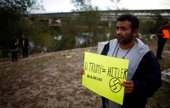 Trump'ın sınır gezisi sırasında Meksika tarafındaki göçmenlerce protesto edildi.