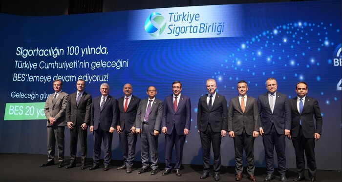 Sigorta ve emeklilik sektörünün çatı kuruluşu Türkiye Sigorta Birliği (TSB), sigortacılığın karar vericilerini ve sektör yöneticilerini düzenlediği etkinlikte bir araya getirdi. Cumhurbaşkanı Yardımcısı Cevdet Yılmaz, Sigortacılık ve Özel Emeklilik Düzenleme ve Denetleme Kurumu İkinci Başkanı Mehmet Verim ve TSB Başkanı Uğur Gülen’in konuşmacı olduğu davette sektör yöneticilerinin yanı sıra Bireysel Emeklilik Sistemi’nin (BES) ‘ilk katılımcıları’ ve ‘en genç üyeleri’ de yer aldı.