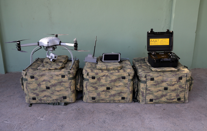 ASELSAN tarafından geliştirilen çok rotorlu insansız hava aracı sistemi, özel eğitimli iki kişilik ekip tarafından kullanılıyor.