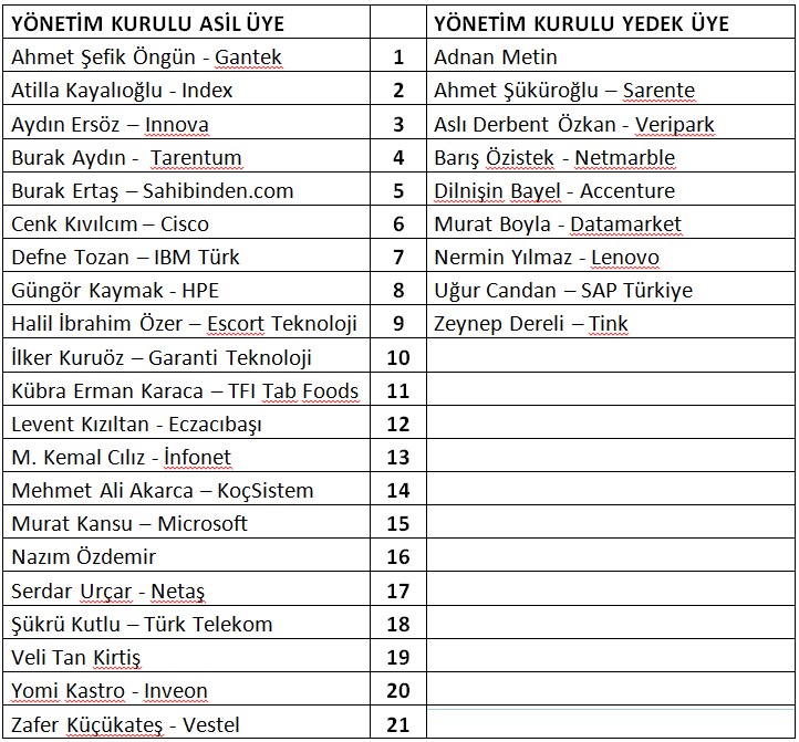 TÜBİSAD’ın yeni Yönetim Kurulu üyeleri alfabetik olarak şu şekilde sıralandı:
