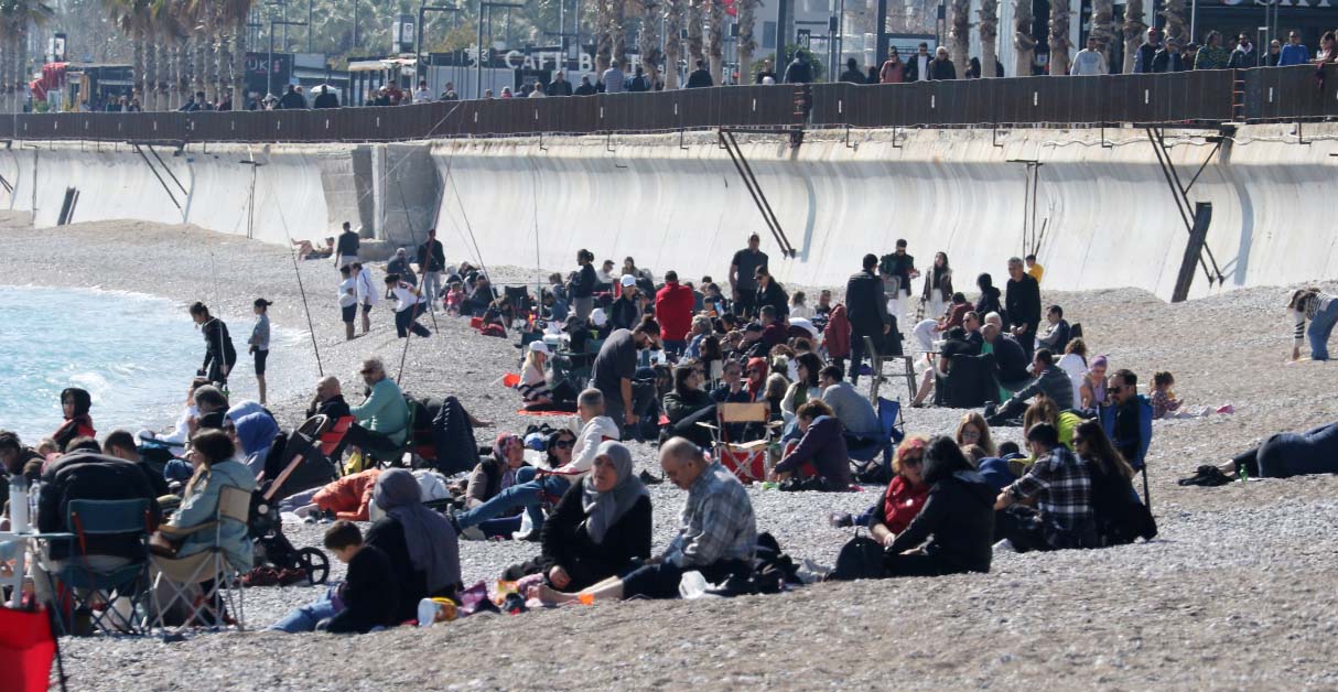 Türkiye'nin birçok bölgesinde soğuk hava etkili olurken, Antalya'da şubat ayının ortasında güneşli günü fırsat bilenler, Konyaaltı Sahili'ne akın etti.