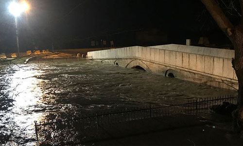 Köprünün girişlerine su çıktı, köprü gözlerinin büyük bölümü de yoğun su akışıyla kapandı.