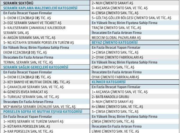 Türkiye İhracatçılar Meclisi (TİM) bünyesindeki ihracatçı birlikleri 2020 yılının en başarılı firmalarını ödüllendiriyor. Son olarak 2 binin üzerindeki üyesiyle tek ve koordinatör ihracatçı birliği olan Çimento, Cam, Seramik ve Toprak Ürünleri İhracatçıları Birliği (ÇCSİB) de 11 alt sektördeki 71 firmaya ödüllerini verdi. Ödül törenin açılışına Ticaret Bakan Yardımcısı Rıza Tuna Turagay, TİM Başkanı İsmail Gülle ve ÇCSİB Başkanı Erdem Çenesiz katıldı.