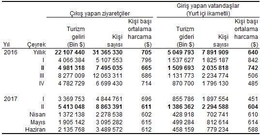 Turizm geliri ve gideri, II. Çeyrek: Nisan-Haziran, 2017