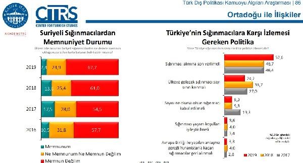 Prof. Dr. Aydın, "S- 400 sorusunu sorarken ABD ve NATO'nun buna karşı çıkıyor olmasına ve ABD'nin Türkiye yaptırım uygulama tehdidine rağmen füzeler alınmalı mı? diye sorduk. Bütün bunlara rağmen ankete katıların yüzde 44'ü alınması gerektiğini söyledi. Araştırmaya katılanların önemli bir kısmı Türkiye'ye sığınmacının alınmaması gerektiğini söylüyor. Suriyeli sığınmacılarla ilgili memnuniyet durumlarını sorduğumuzda ise giderek azalan bir memnuniyet olduğunu görüyoruz" ifadelerini kullandı.