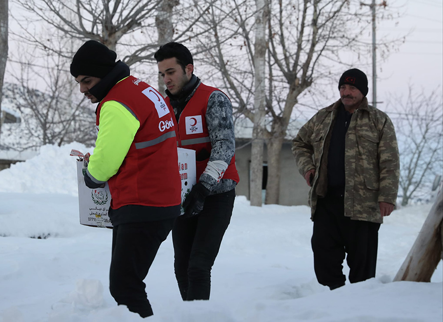 Kızılay, depremin 6. günü itibarıyla yıkıntı nedeniyle ihtiyaç sahibi olduğu belirlenen 900 köye ulaştı. Bu köylerde hayatını sürdüren vatandaşlara dayanıklı gıda maddeleri, battaniye ve kıyafet yardımlarını taşıyan Kızılay, kara yoluyla ulaşamadığı yerlere TSK'ya ait helikopterlerle ulaşarak ihtiyaç malzemelerini bırakıyor.
