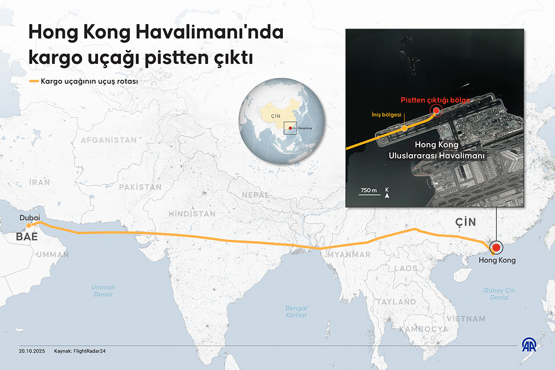 Kaza nedeniyle Hong Kong Uluslararası Havalimanı’nın kuzey pisti geçici olarak hava trafiğine kapatıldı. Yetkililer, uçuşların geçici olarak güney pistine yönlendirildiğini ve hava trafiğinde sınırlı gecikmeler yaşandığını duyurdu.