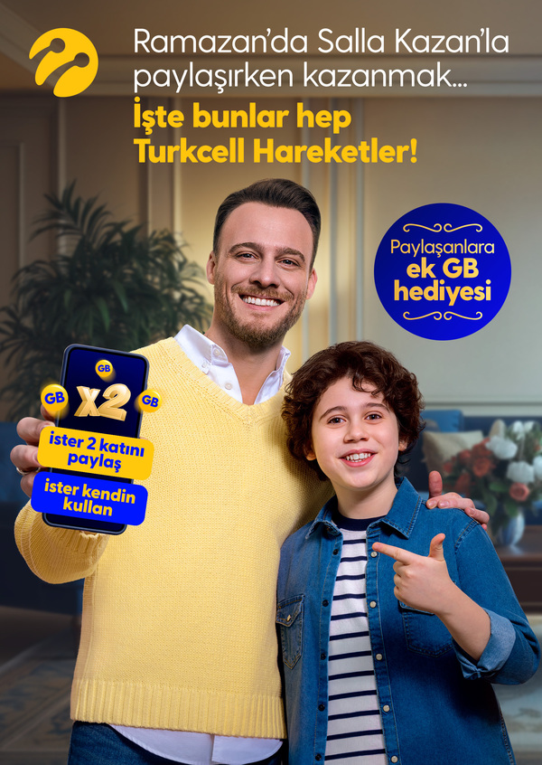 Turkcell, Ramazan Ayı’na özel olarak hazırladığı ‘Salla Kazan’ kampanyasıyla kullanıcılarına kazandıkça paylaşma ve paylaştıkça daha fazlasını kazanma fırsatı sunuyor. Kampanya kapsamında, Turkcell’liler Turkcell mobil uygulaması üzerinden ‘Salla Kazan’ özelliğini kullanarak kazandıkları GB’ları ister kendileri kullanabiliyor, isterlerse iki katını sevdikleriyle paylaşarak ek gigabyte (GB) kazanabiliyor.