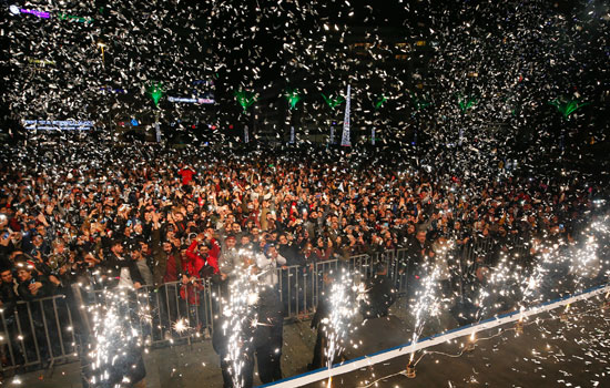 Kalabalık yeni yıla adım atıldığında müzik eşliğinde eğlendi.