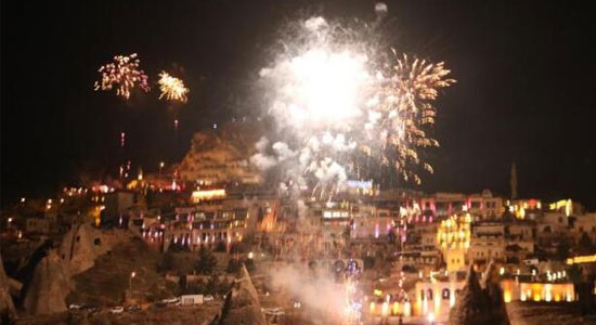 KAPADOKYA'DA YENİ YILA COŞKUYLA GİRDİLER- Türkiye'nin önemli turizm merkezlerinden Kapadokya bölgesinde yerli ve yabancı turistler yeni yıla coşkuyla girdi. Kapadokya bölgesinde yerli ve yabancı turistlerin yılbaşı kutlamaları için en fazla ilgi gösterdiği mekanlar, volkanik tüfler içerisine oyularak yapılan yeraltı eğlence merkezleri oldu. Bölgeye gelen yerli ve yabancı turistler, 2023 yılını eğlence merkezlerinde karşıladı. Turistler, havai fişek gösterileriyle eğlendi.