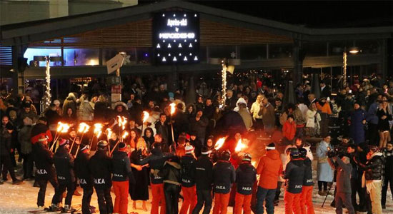 Kış turizminin önemli merkezlerinden Erzurum'daki Palandöken'i tercih eden tatilciler, hava sıcaklığının sıfırın altında 7 dereceye kadar düştüğü soğukta, gökyüzünü aydınlatan havai fişek eşliğinde meşaleli kayak gösterisini izleyerek yeni yıla girdi.