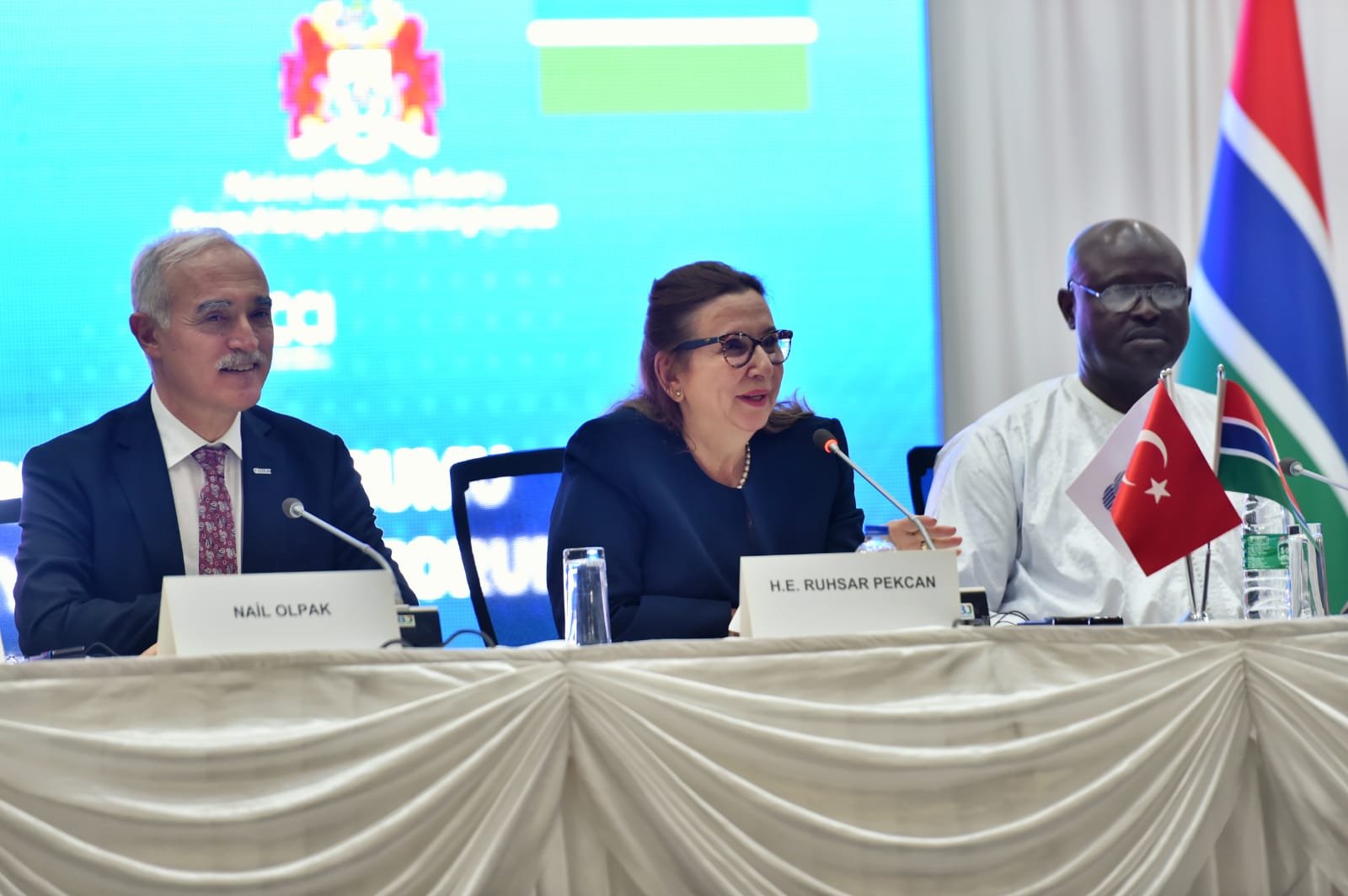 Gambiya-Türkiye İş Forumu’nda Türk firmalarının her sektörde iş birliği yapmaya hazır olduğuna dikkat çeken T.C. Ticaret Bakanı Ruhsar Pekcan, “ Türkiye, Gambiya’nın turizm alt yapısı ve hizmet sektörlerinin gelişmesi için yardımcı olabilir. Türk müteahhitlerimiz, Gambiya’daki alt yapı ve üst yapı projelerini de hızlı ve ekonomik şekilde tamamlayabilecek güçteler. Ayrıca elektrik ve enerji alt yapısının geliştirilmesi için de yeni iş birliklerine imza atabiliriz. Dolayısıyla, Türk firmalarının Gambiya’daki fırsatlar için davet edilmesini özellikle istiyoruz. Türkiye ile Gambiya arasındaki dostluk ve iş birliği, ECOWAS kapsamında da sürüyor. ECOWAS için Sayın Bakan Jobe’den desteklerini rica ettim. Bu güçlü bağlar, hem Afrika ile hem de Gambiya üzerinden iş birliğini arttıracaktır. Afrika bizim için çok önemli. Biz de bu kapsamda iki senede bir Türkiye-Afrika Ekonomi ve İş Forumu’nu gerçekleştiriyoruz.” şeklinde konuştu.