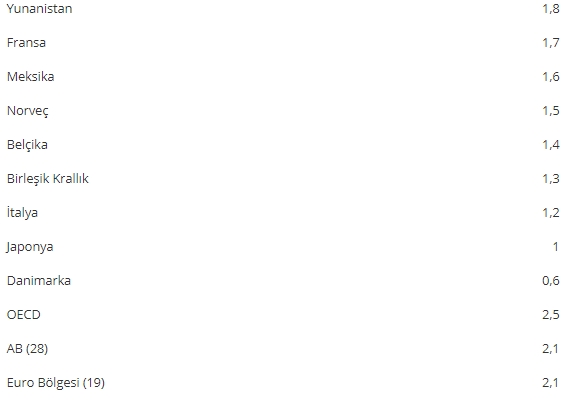 Büyümede en zayıf performansı gösteren Avrupa ülkeleri ise yüzde 0,6 ile Danimarka, yüzde 1,2 ile İtalya oldu.