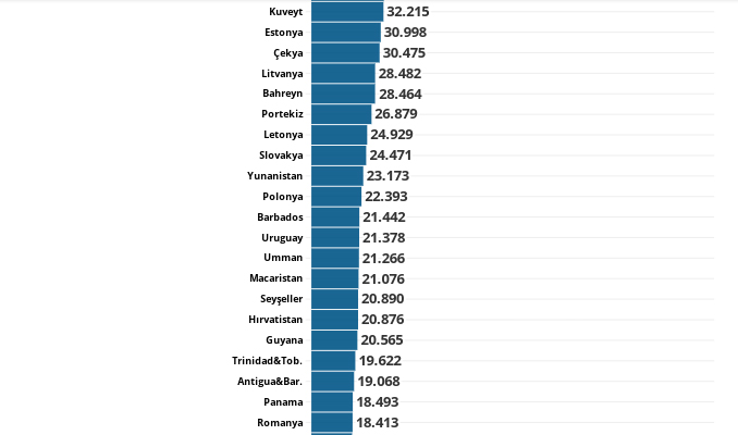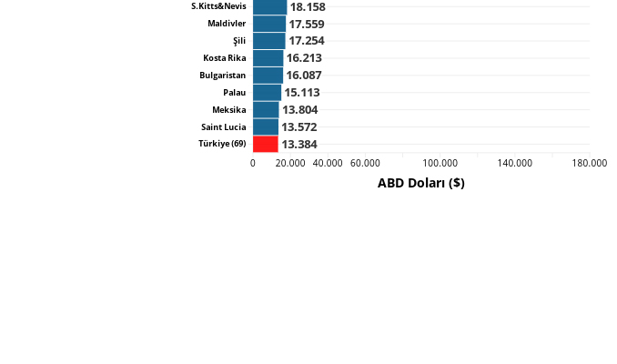 Öte yandan Türkiye’de dolar bazında kişi başına milli gelirin bu kadar yükselmesi Türkiye’nin dünyadaki sıralamasının da bu kadar yükseldiği anlamına gelmiyor.