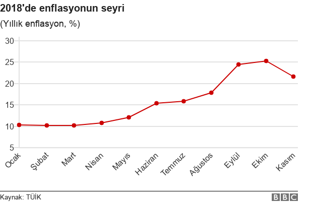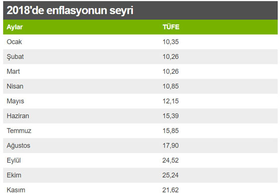 Buna karşın enflasyon Kasım ayına kadar yükselmeye devam etti. Aşağıdaki tablo ve grafik bu durumu gösteriyor.